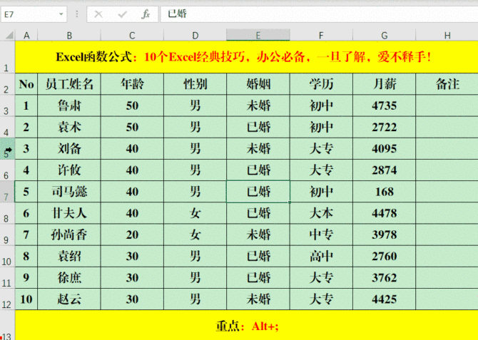 一、Excel經(jīng)典技巧:不復(fù)制隱藏行。 方法: 1、選中隱藏或篩選后的區(qū)域,快捷鍵Alt+;。 2、復(fù)制并粘貼。 二、Excel經(jīng)典技巧:制作下拉菜單。 方法:……