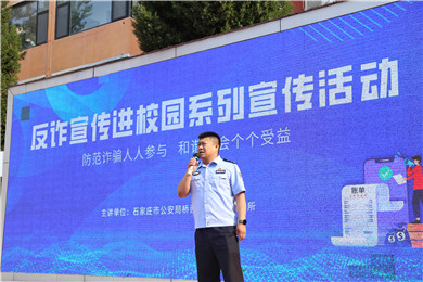 6月12日,石家莊市公安局橋西分局育文派出所所長朱玉磊走進石家莊新華電腦學校,為全體師生帶來一堂以防范新型電信網(wǎng)絡詐騙為主題的專題講座;顒又荚谔嵘龓熒鷮λ畏怠