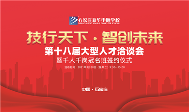 技行天下,智創(chuàng)未來。石家莊新華電腦學(xué)校第十八屆大型人才洽談會暨千人千崗冠名班簽約儀式即將在3月30日拉開序幕。來自全國各地的百余家互聯(lián)網(wǎng)名企即將走進(jìn)石家莊新華電……